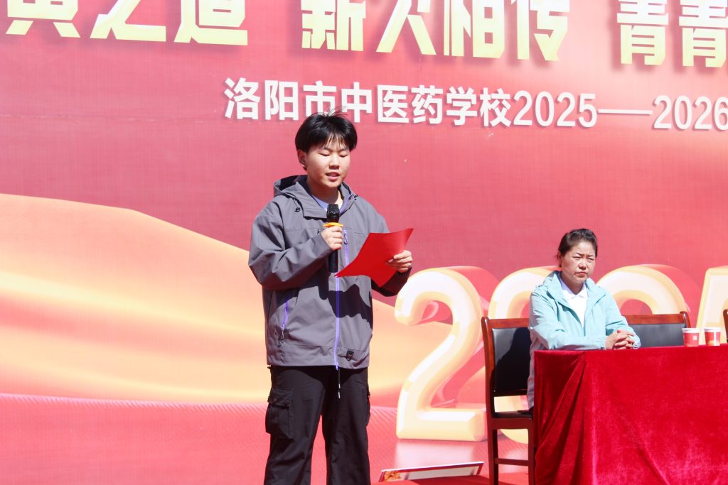 2025級(jí)新生代表李蕓潔發(fā)言,她講到開(kāi)學(xué)時(shí),是學(xué)長(zhǎng)學(xué)姐們?yōu)槲覀儫崆榉?wù),不辭疲勞的告訴我們宿舍樓、教學(xué)樓、餐廳的位置。軍訓(xùn)中,學(xué)校為我們準(zhǔn)備了清涼解暑的綠豆湯,班主任老師時(shí)刻陪伴身影和不斷的鼓勵(lì)眼神,使我們時(shí)刻感受到老師和同學(xué)們的溫暖和關(guān)愛(ài)。在接下來(lái)的學(xué)習(xí)和生活中,我們要有堅(jiān)定的信念和勇敢的心態(tài)面對(duì)各種困難和挑戰(zhàn),用心體會(huì)知識(shí)的魅力,課堂上課外中,主動(dòng)參與各種學(xué)習(xí)活動(dòng),積極進(jìn)取,不斷進(jìn)步,成為有擔(dān)當(dāng)、有本領(lǐng)的中醫(yī)藥傳承者。